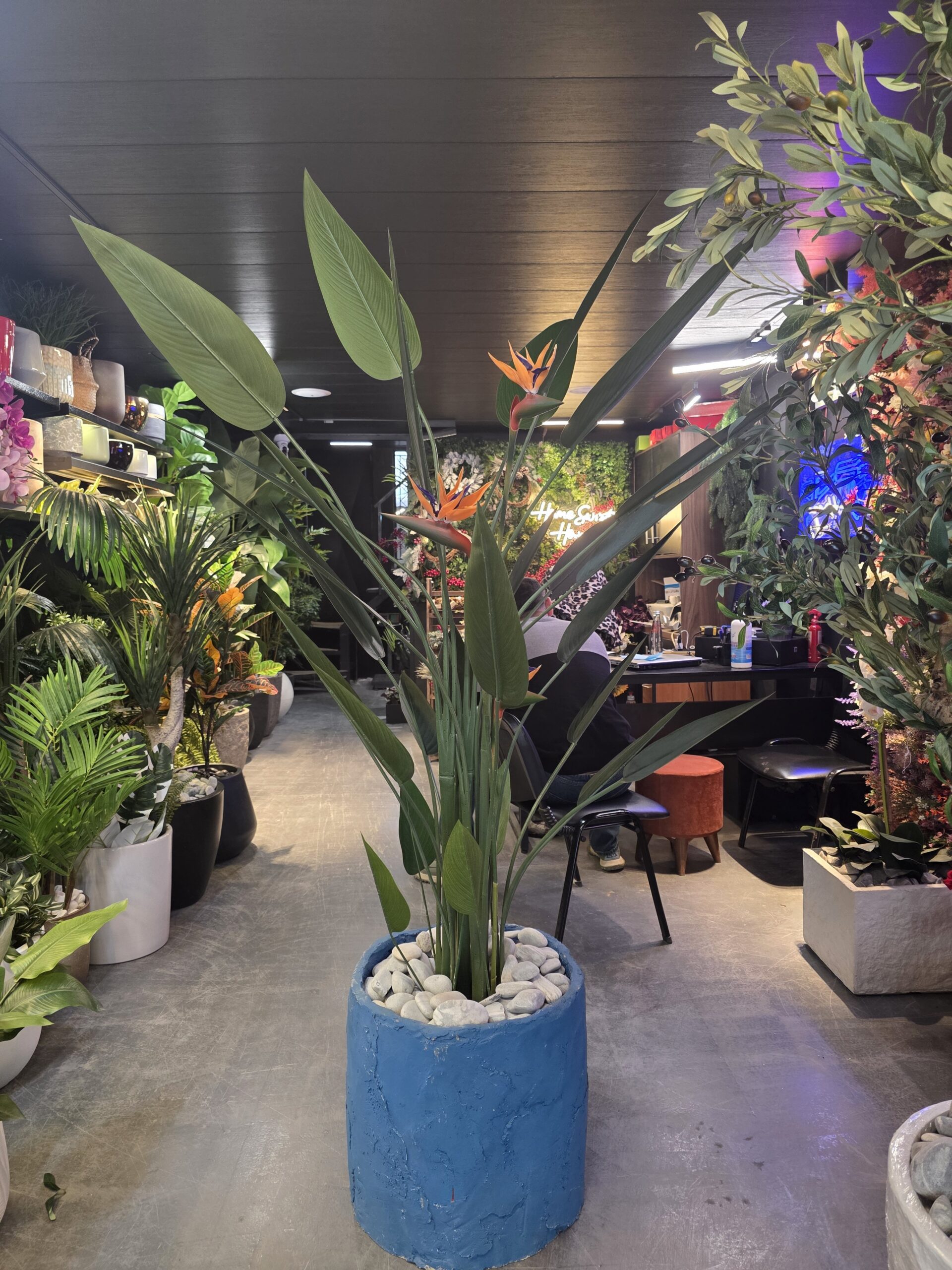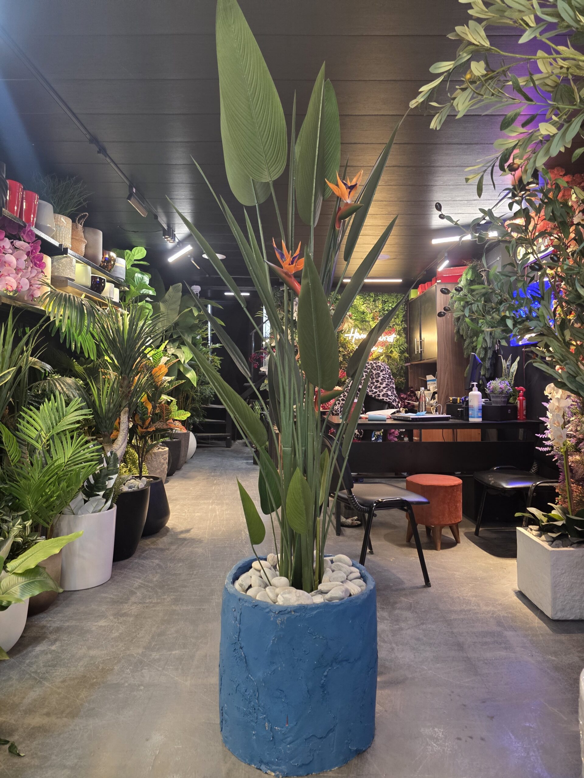 Our Birds of Paradise tree is a striking greenery statement designed to elevate both residential and commercial spaces. With its sculptural silhouette and lush tropical leaves, it brings height, movement, and a refined natural presence to any interior or covered outdoor environment.