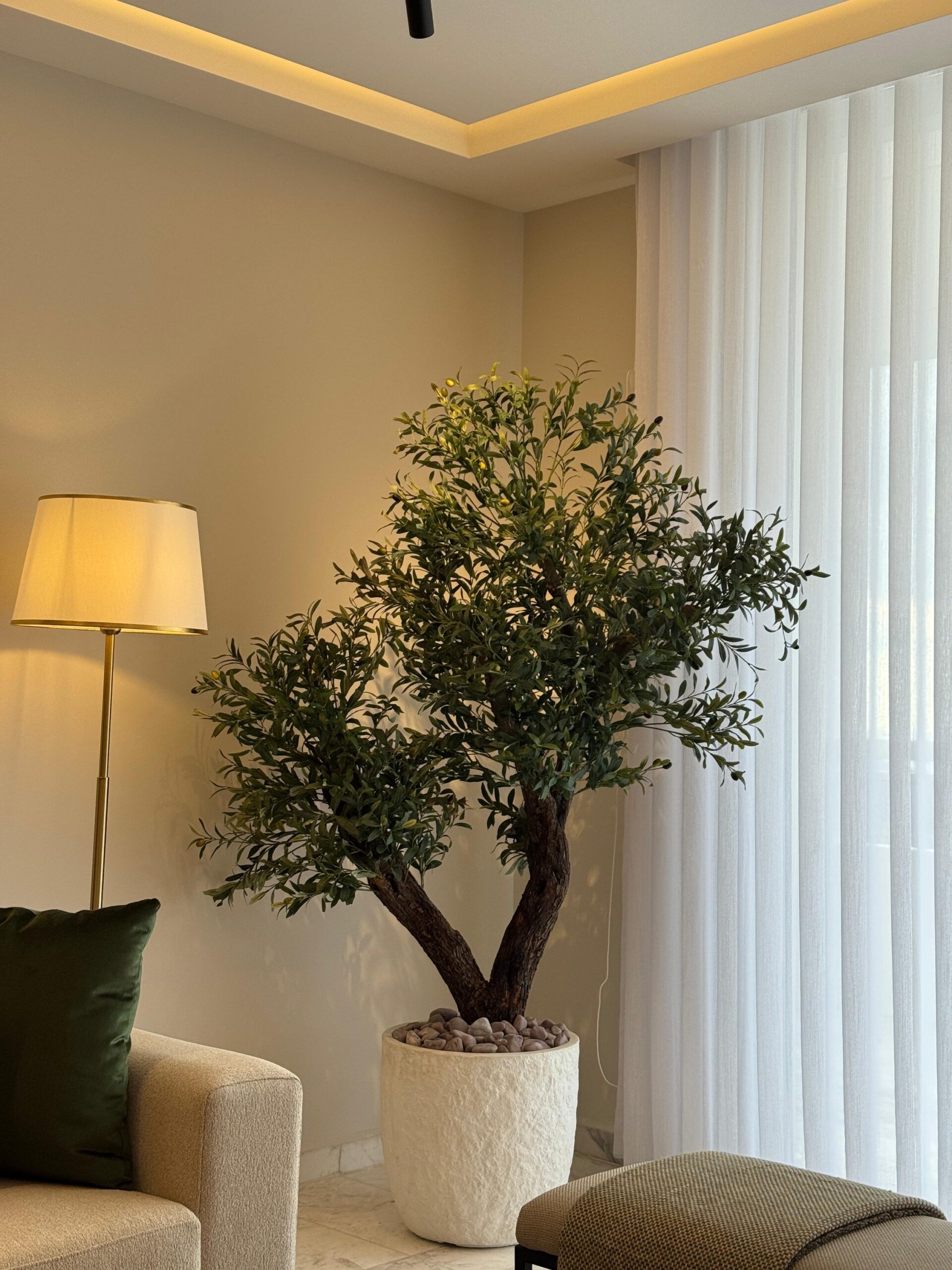 Real treated olive wood trunk, Decorative Pot Excluded (Tree comes in small default plastic pot) Decorative Pot Options also Available in Pots Category